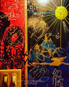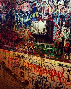 My mom led me to the restroom and opened the door for me to see its walls covered in doodles, graffiti, and urban poetry. In less than an hour she had learned movies had been filmed at this corner bar and from what she was told, scenes were filmed specifically in this restroom because of its character. She admitted 30 years ago this would not likely be cool and trendy, but a junkie’s haven.