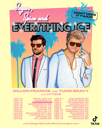Dillon Francis and Yung Gravy will tour the 2022, co-headlining the Sugar, Spice and Everything Ice tour, February 4th at Great Hall at Avant Gardner in Brooklyn, NY. KITTENS will support and TikTok is the presenting sponsor.