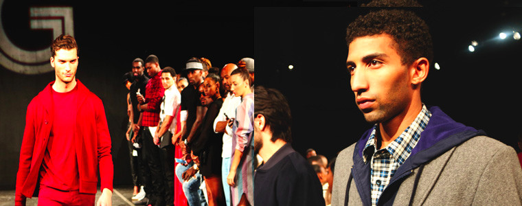 Around 9pm, the cool kids strutted their stuff in what is sure to be the city’s most wanted Mens casuals. Originally started as a Mens fashion blog by owner and designer Jace Lipstein, Grungy Gentleman defines infectiously collectible daywear, black bottoms and the coolest socks around — tailored with a bit of sheen here and there — to kick off New York Fashion Week. Model Rafael Valentino walked the stage in neutral plaid, navy blue zip front hoodie and one of the brand’s outstanding, full length Spring blazers to prove this brand is so much more than very chic sweatpants. On a slightly more nocturnal note, the Grungy collection of Mens jackets was superb at interpreting uncontrived versions of Pantone palette shades Aurora Red and Marsala. Unfamiliar with the #grungygentleman life? The brand’s blog covers everything from drinking scotch to much-needed male accessories.