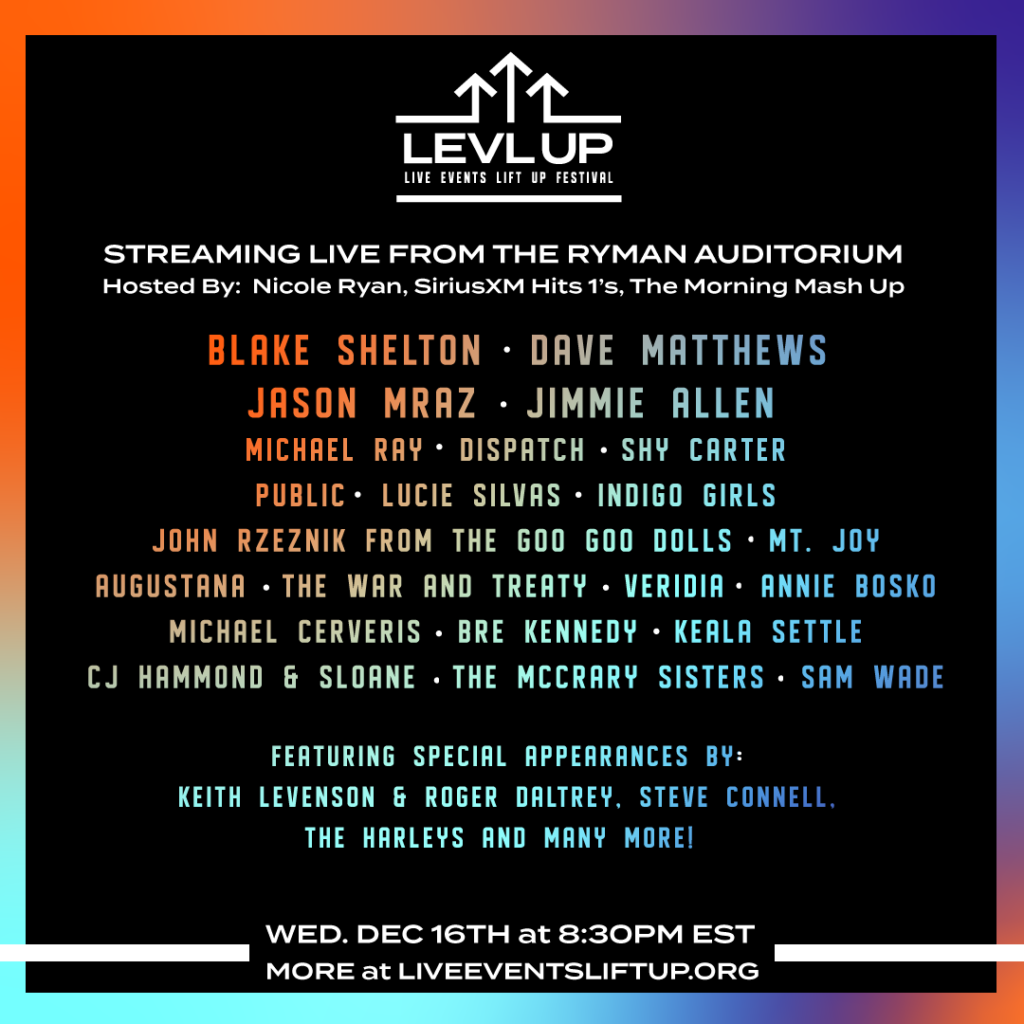 Tune in to the LEVL UP Fest, live from the historic Ryman Auditorium in Nashville on Wednesday, December 16th at 8:30 p.m. Eastern time.