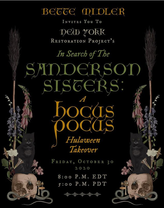 NYRP Founder Bette Midler reunites with Sarah Jessica Parker and Kathy Najimy for In Search of The Sanderson Sisters: A Hocus Pocus Hulaween Takeover hosted by Elvira, Mistress of the Dark.