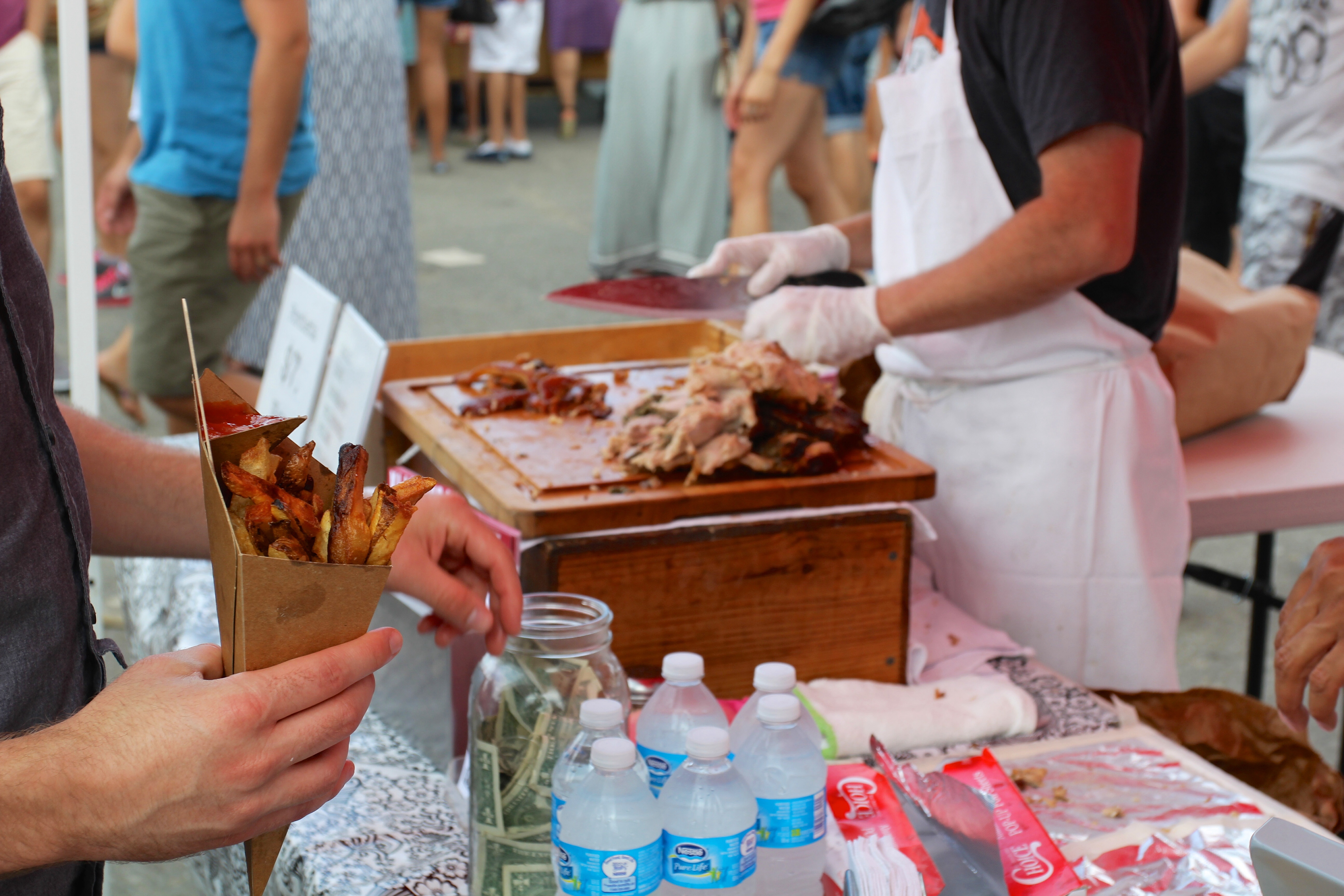 I made two passes before deciding what to eat. The first thing I ate was maple glazed bacon from Landhaus. How could you go wrong eating bacon at a place called Smorgasburg? I had my eye on one bbq stand the whole time. It was by far the longest line in the entire market, but well worth the wait. I had a brisket sandwich so good, if I lived the rest of my life on a dessert island with only this brisket, I’d be ok. The only downside aside from the wait was the $10 price tag for a sandwich barely bigger than a big mac. So much for sailing off into brisket bliss.