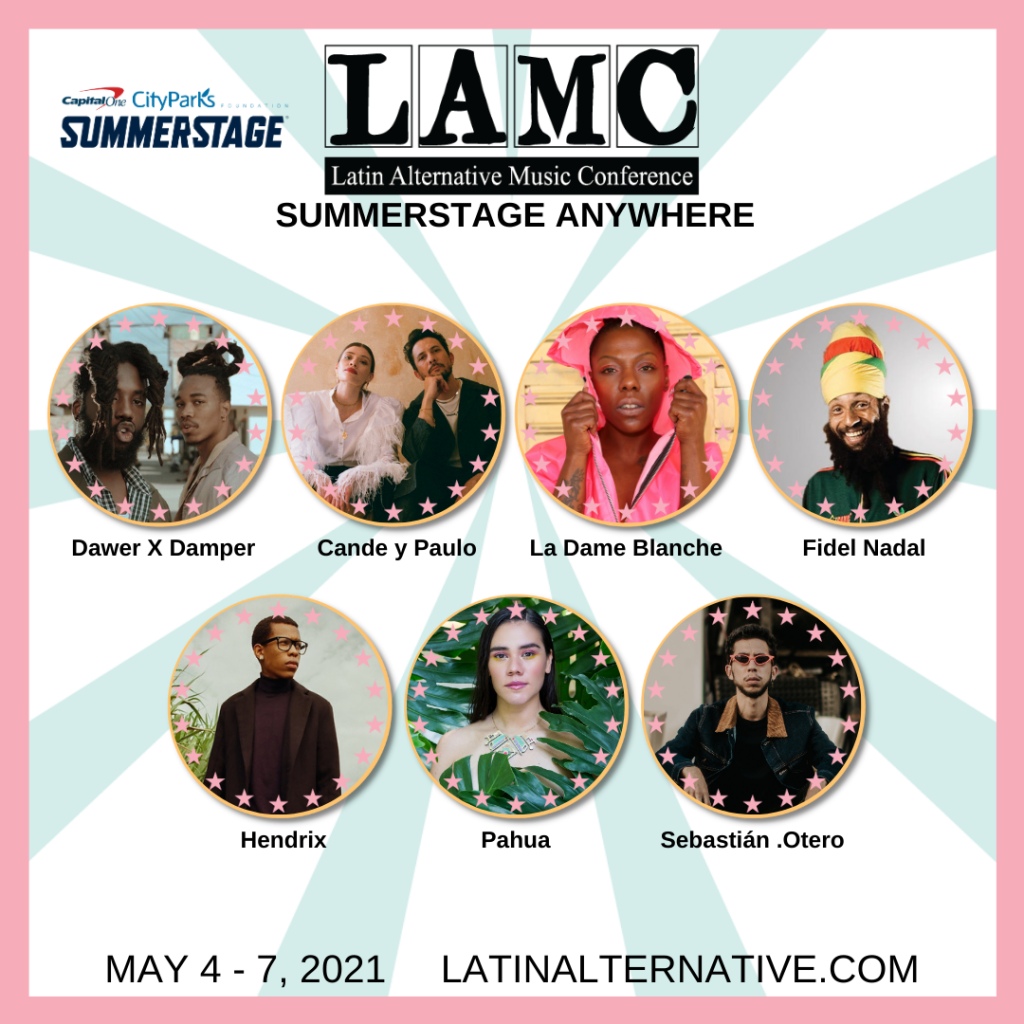 LAMC (Latin Alternative Music Conference) is bringing their annual indie showcase to SummerStage Anywhere tomorrow, Thursday, May 6 at 6pm ET featuring a variety of emerging Latin voices including Cande y Paulo; Dawer x Damper, Fidel Nadal and many more.