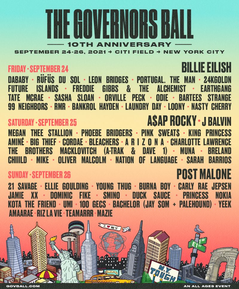The Governors Ball Celebrates its 10th Anniversary 0 By LIB Staff on May 5, 2021 Art & MusicThe Governors Ball is back to celebrate its 10th anniversary September 24-26th at Citi Field in NYC.Get tickets here.